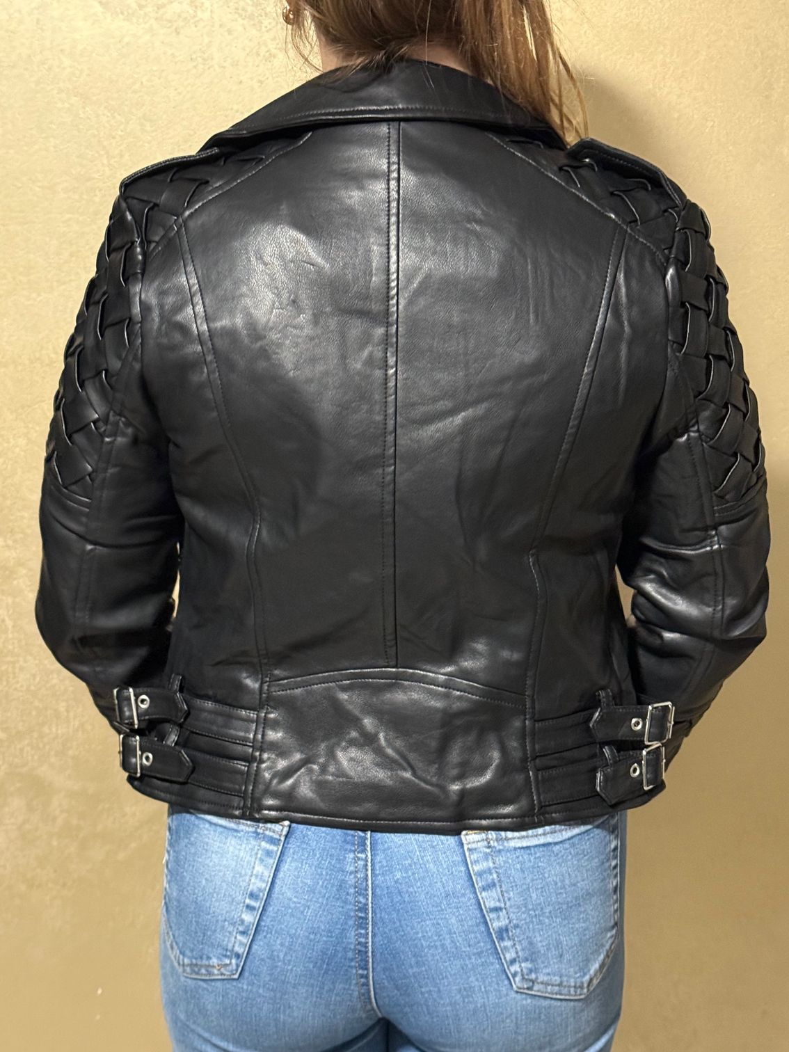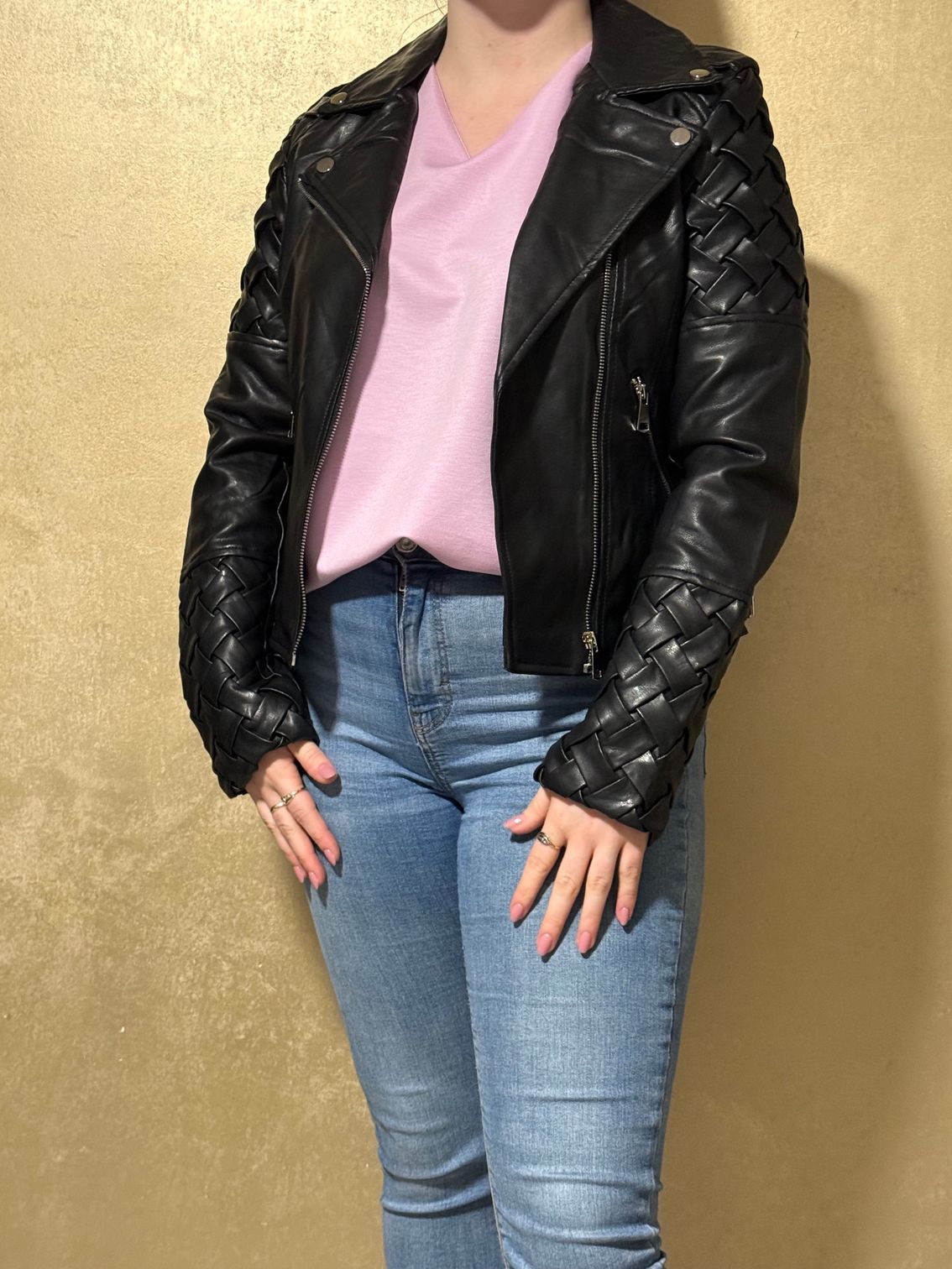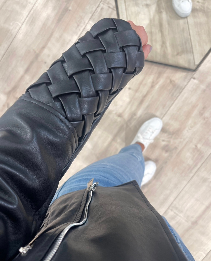 Bikerjack met een gevlochten detail op schouder en mouw.