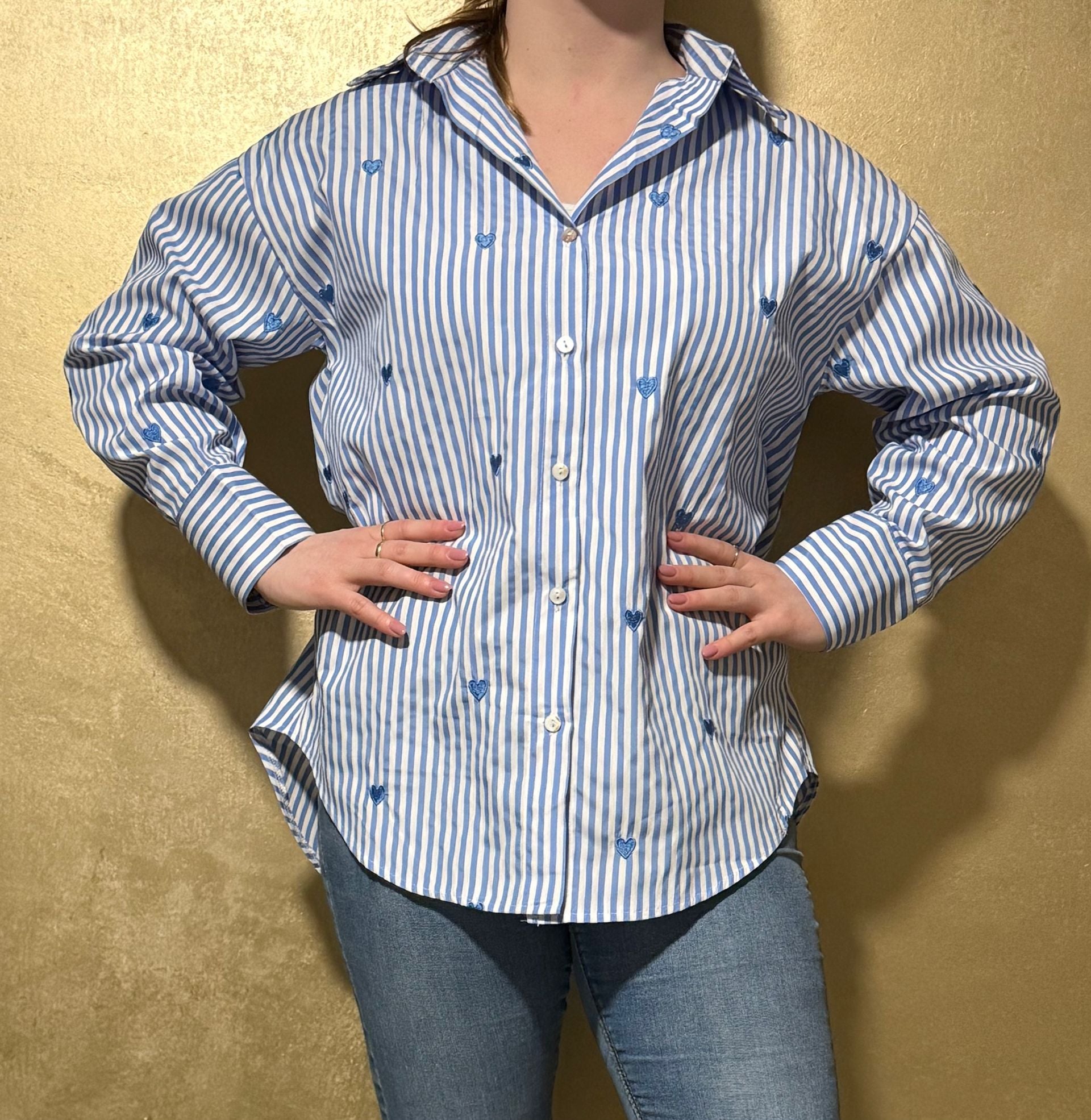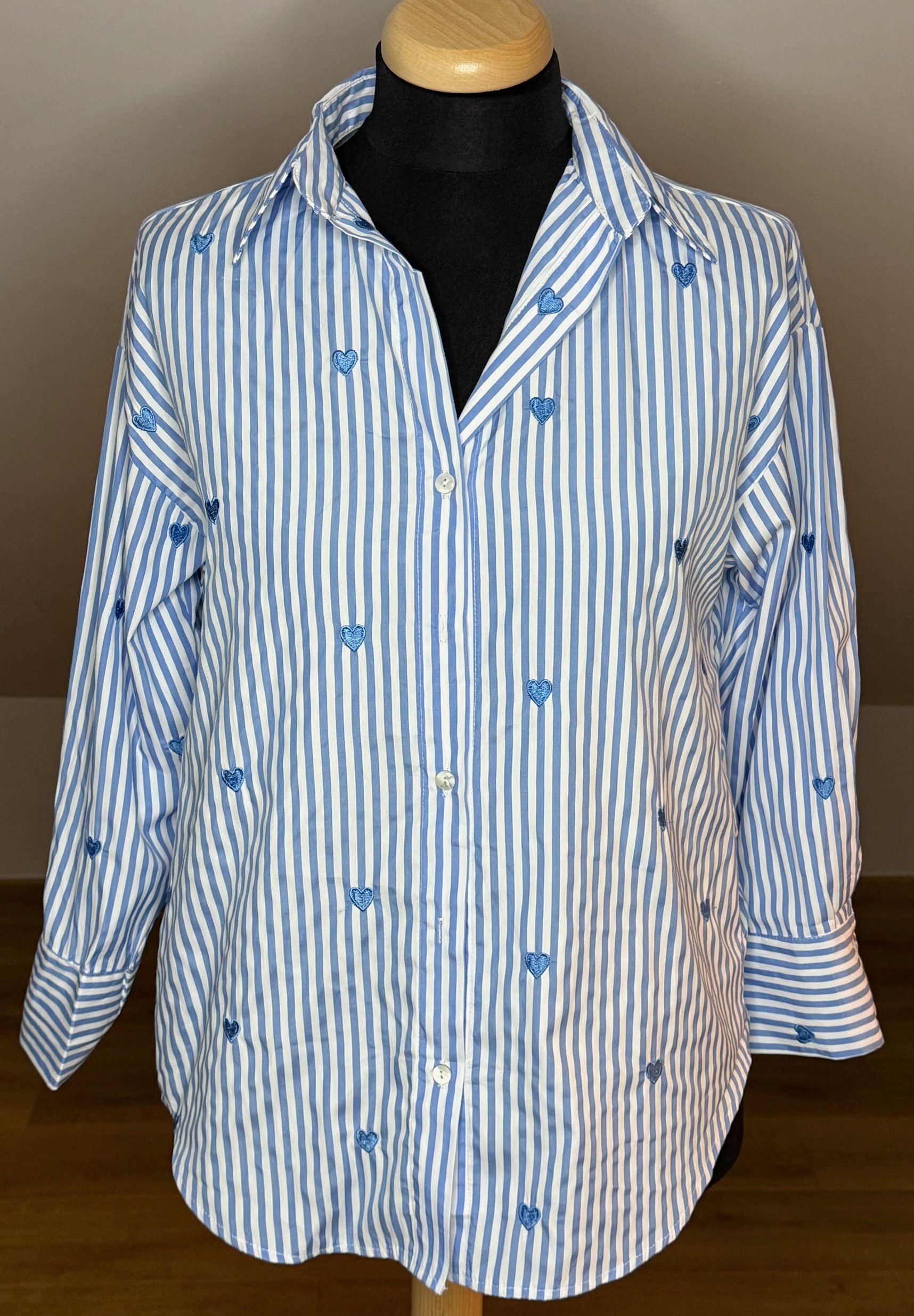 Stijlvolle blouse met een streeppatroon en schattige, gestikte hartjes.