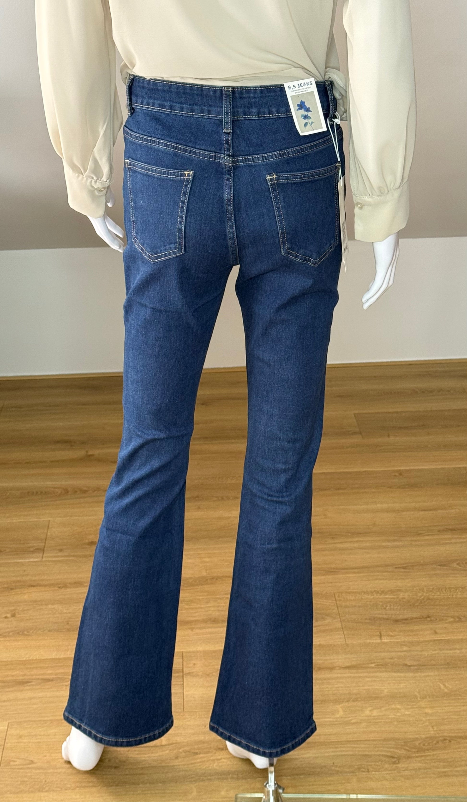 Elegante flare jeans in een diepe, donkerblauwe wassing. Mooi vallend model met een normale taille en een flatterende pasvorm. Lengtemaat: 32.