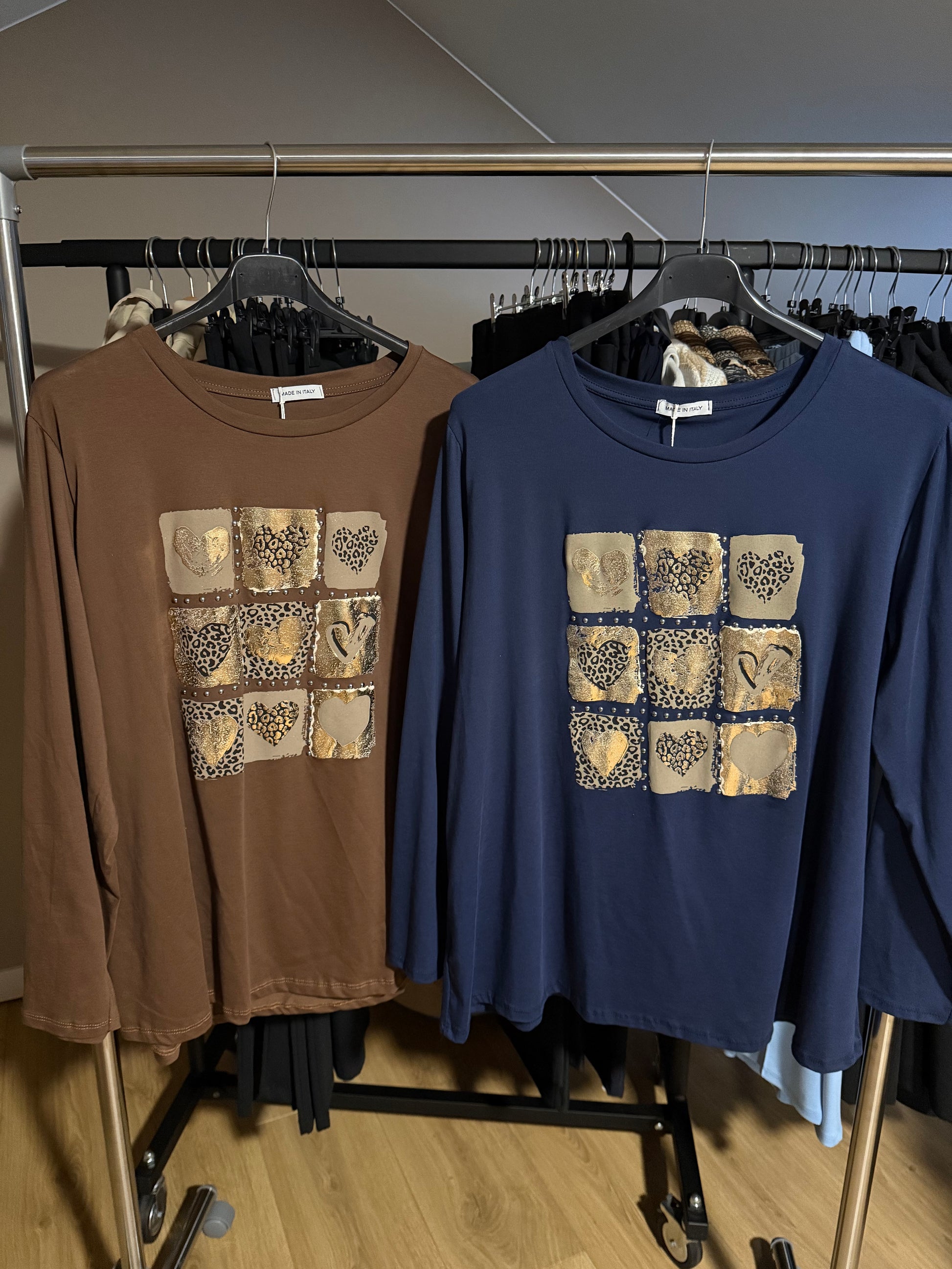 Stijlvolle en comfortabele longsleeve met een opvallende hartprint in goudtinten en subtiele animal details. De top heeft een soepele pasvorm en draagt heerlijk dankzij de zachte stof met lichte stretch. Gemaakt van 95% katoen en 5% elastan, wat zorgt voor optimaal draagcomfort. Verkrijgbaar in bruin en donkerblauw.