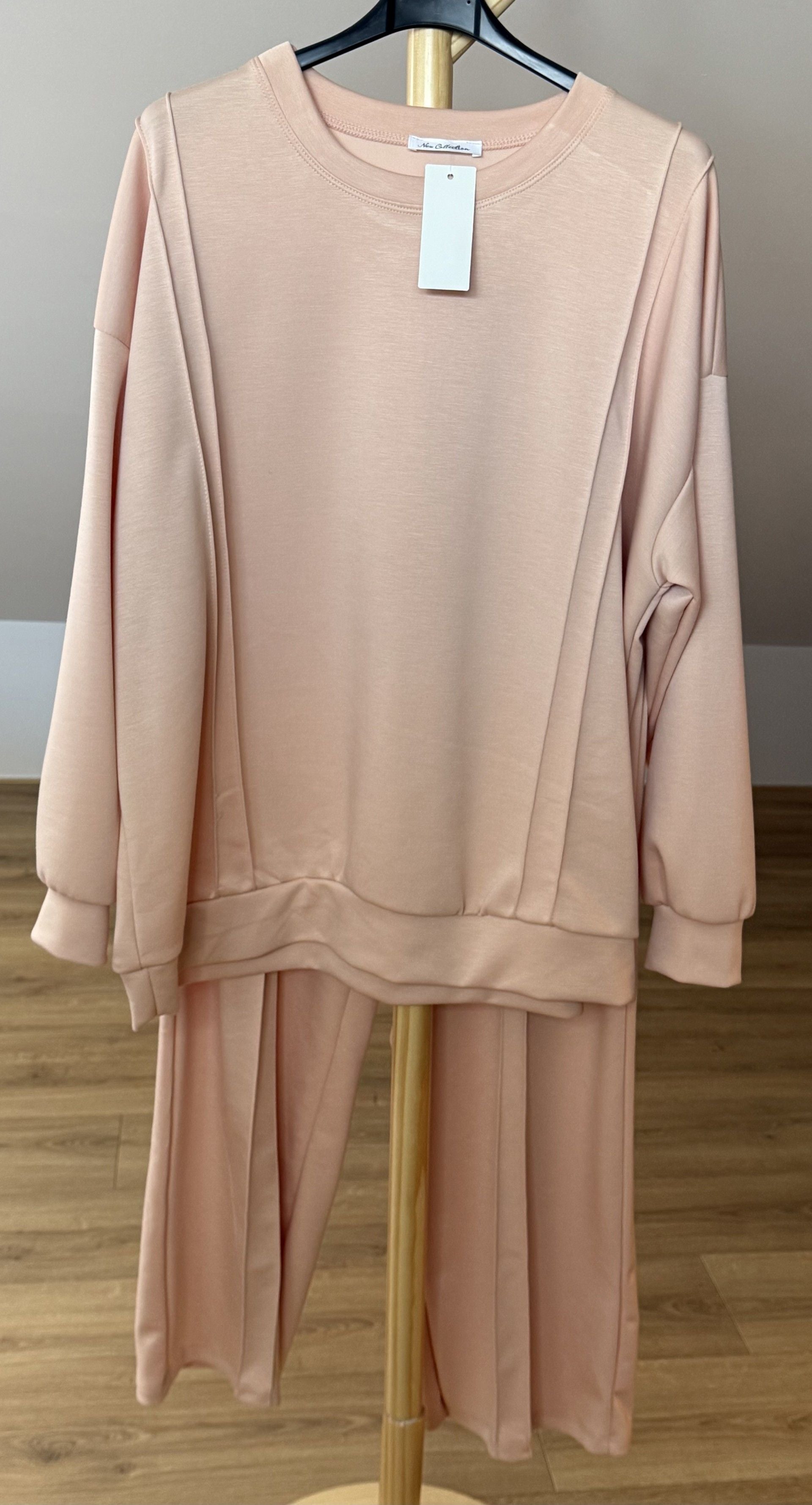 Stijlvol en comfortabel pak in grote maten, beschikbaar in 4 kleuren: roze, blauw, beige en zwart. One size (te dragen van maat 46 t/m maat 50).