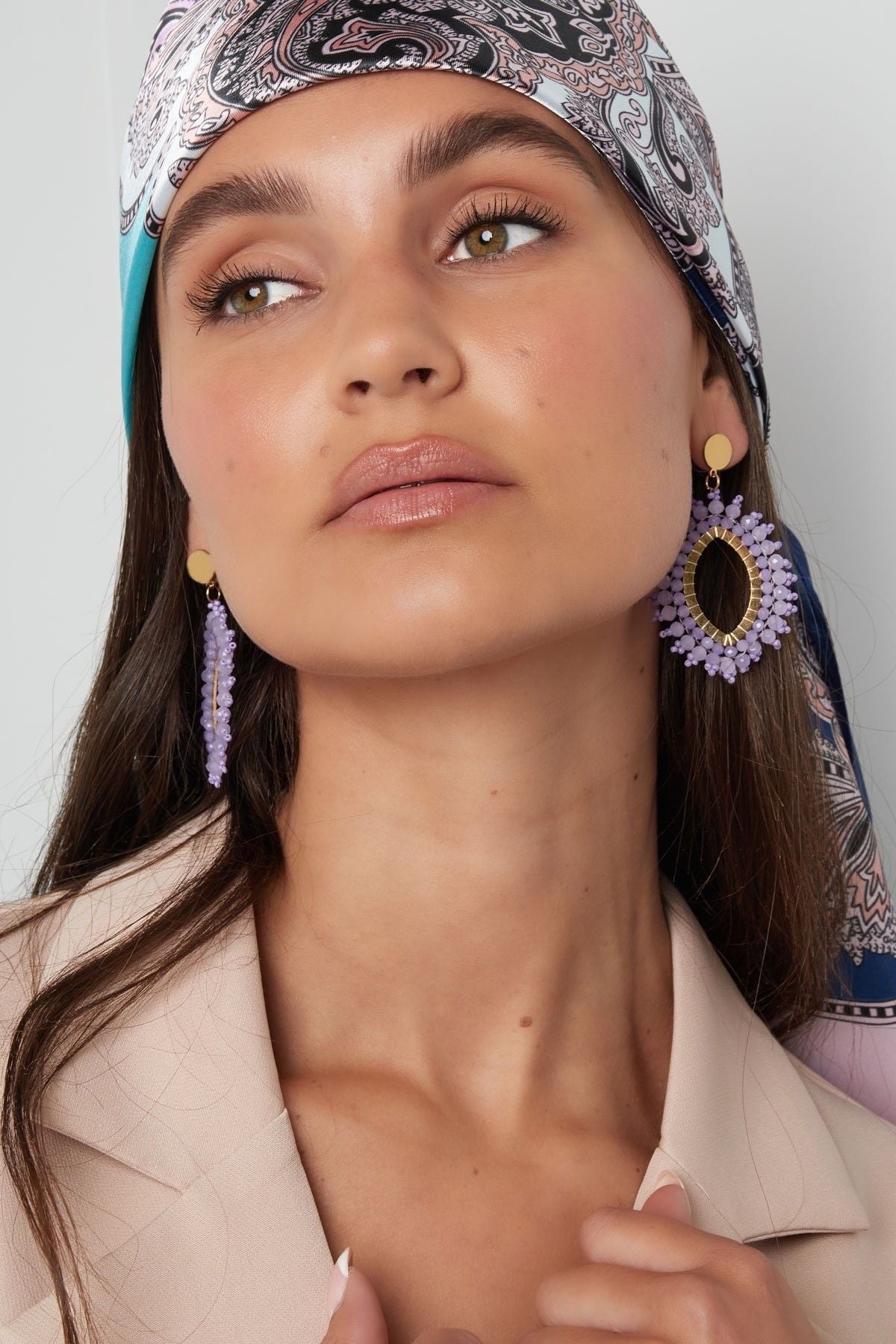 Deze schitterende oorbellen zijn vervaardigd uit roestvrij staal en kristalkralen, met een hoogte van 6,5 cm. Ze zijn perfect om te dragen tijdens warme zomerdagen of op een feest.