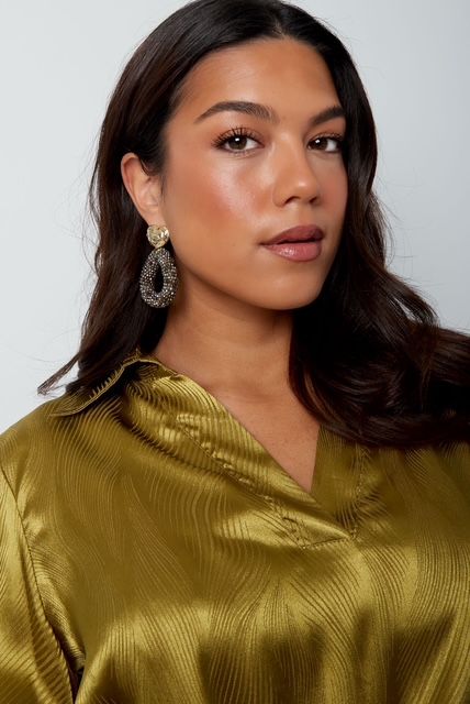 Ontdek nu deze prachtige gouden oorbellen in een ovale vorm, vervaardigd uit grijze kraaltjes met een gouden hartje! Deze oorbellen zijn super trendy. Lengte van deze oorbellen zijn 6 cm.