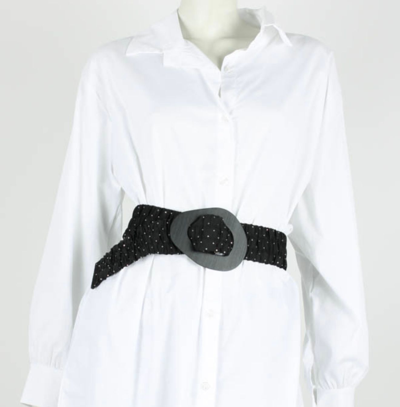 Stijlvolle gesmokte riem van elastiek met satijnlook en fantasy steentjes.