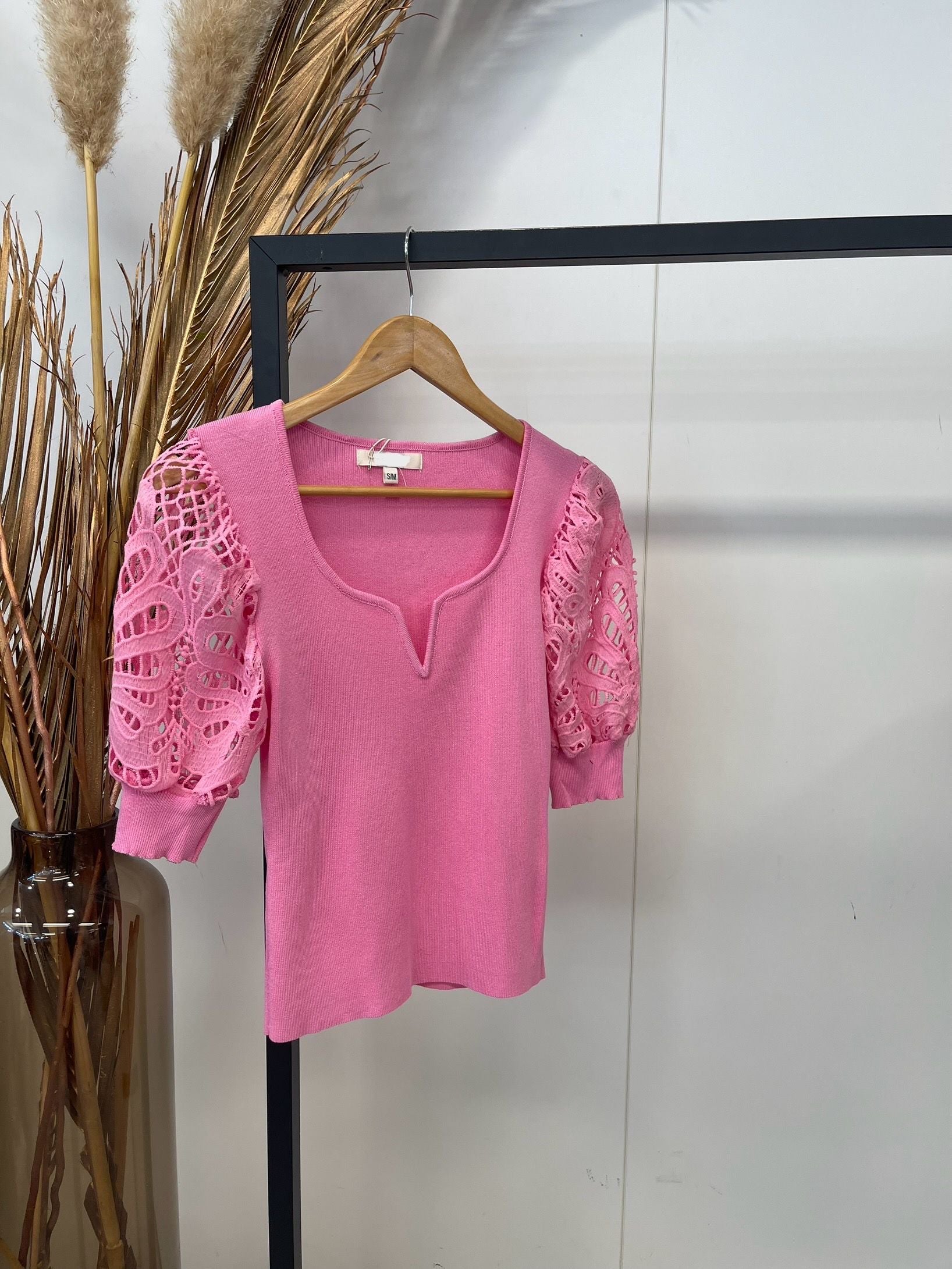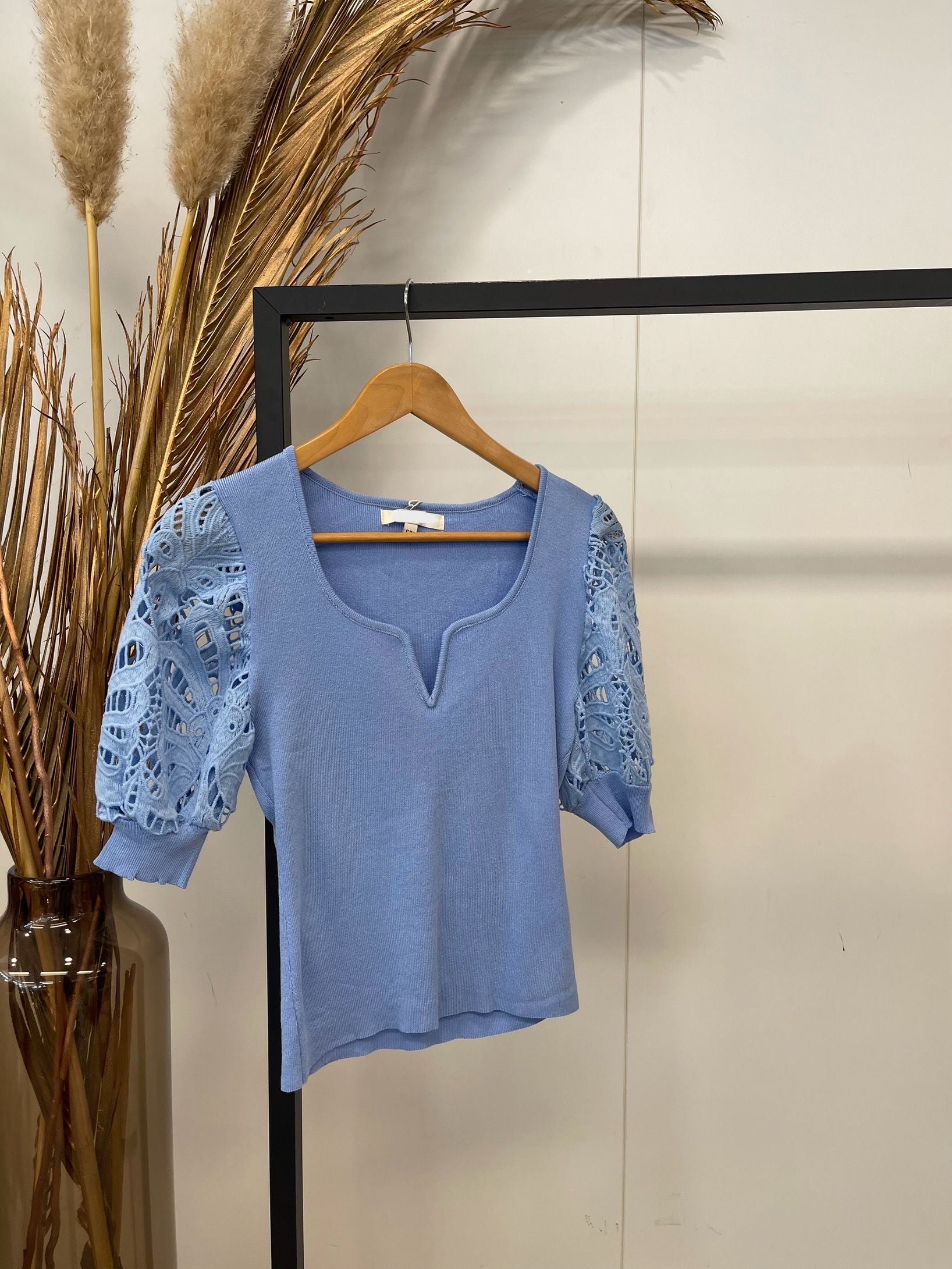 Charmant shirt met gehaakte mouwen.