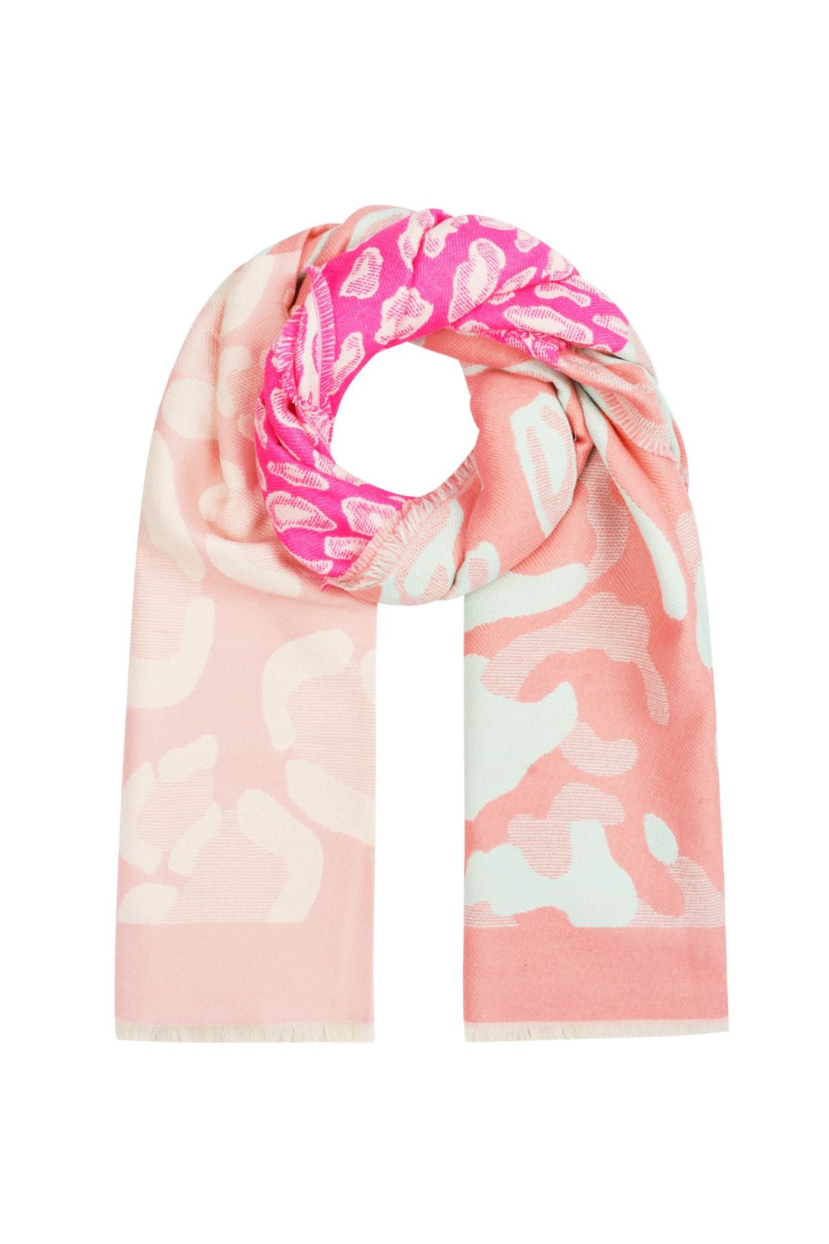 Stijlvolle, warme, kleurrijke sjaal met een panterprint, vervaardigd uit 100% acryl. Afmetingen zijn 190x90 cm.