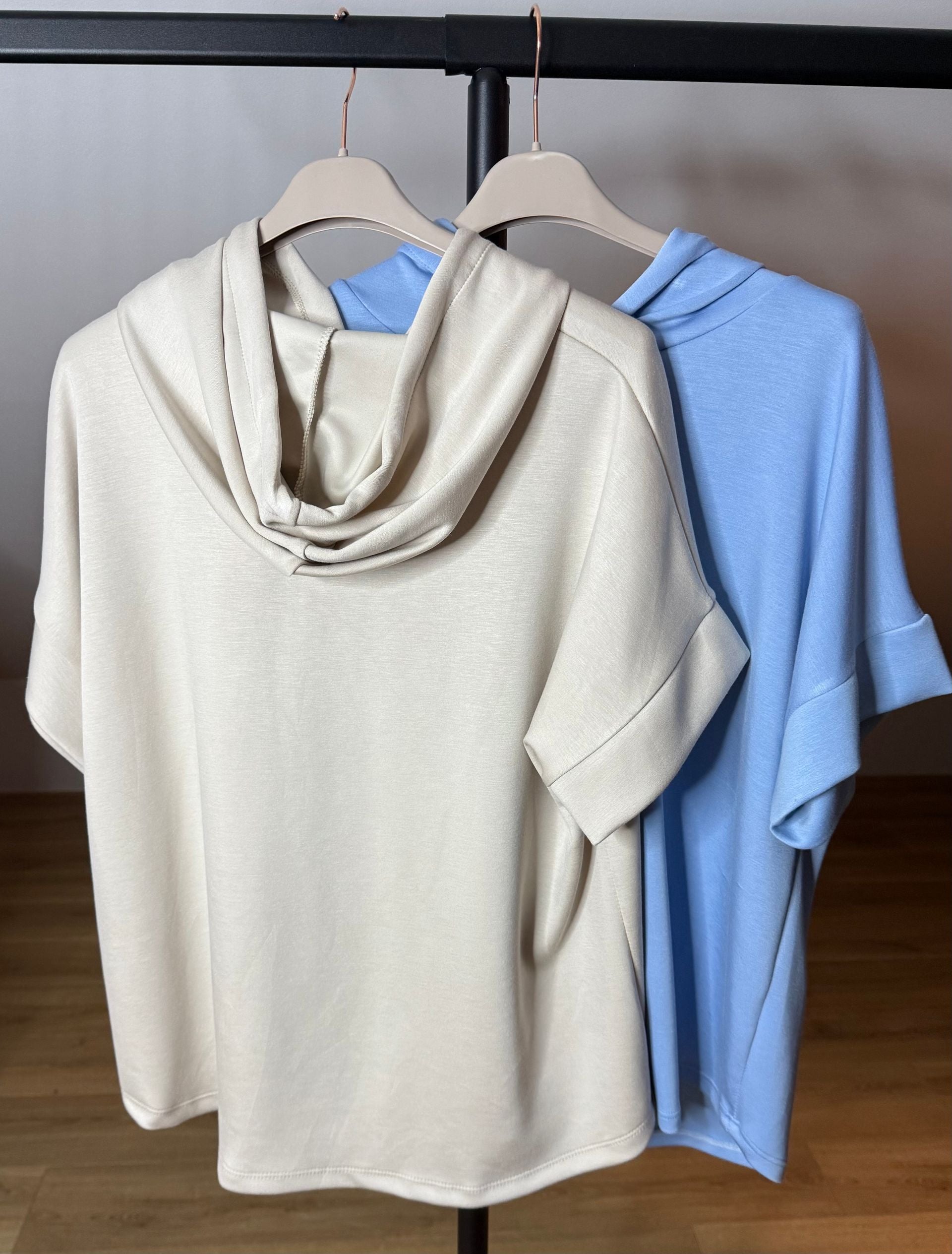 Top van een heerlijk stofje, perfect voor het voorjaar. Verkrijgbaar in twee prachtige kleuren: blauw en beige. One size, geschikt tot maat 44. Bijpassende joggingbroek is ook beschikbaar; kijk bij de broeken.