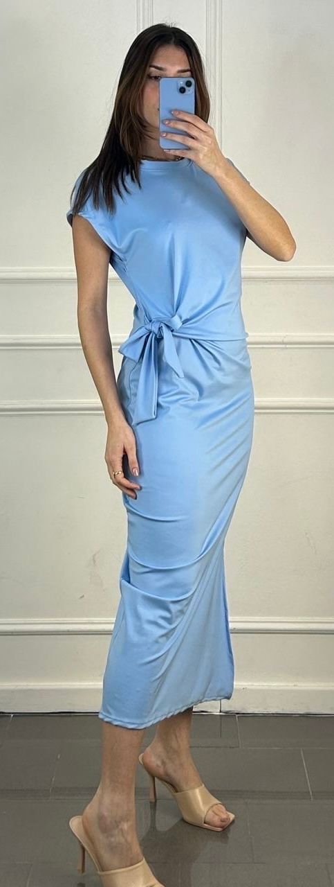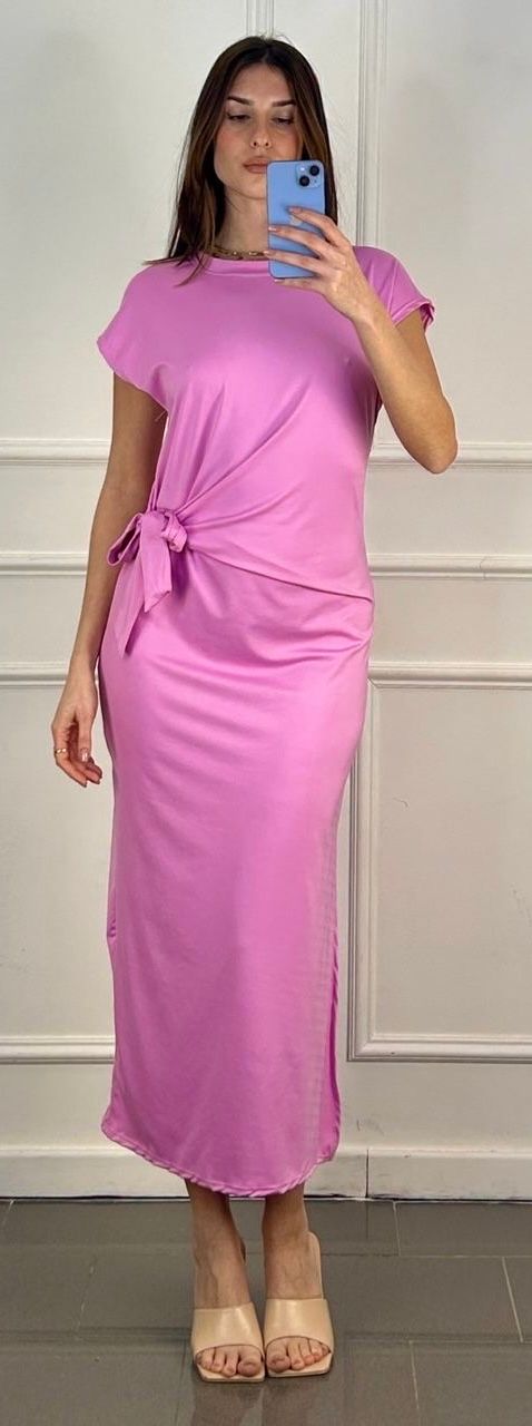 Stijlvolle jurk van travelstof met knoopdetail aan de zijkant en een elegante split.